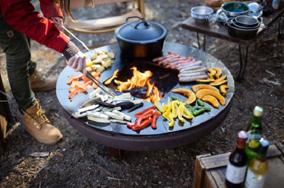 ボウルの中心で燃える火が厚い鉄板のグリルに熱を与え、本格的な鉄板料理を可能にします。