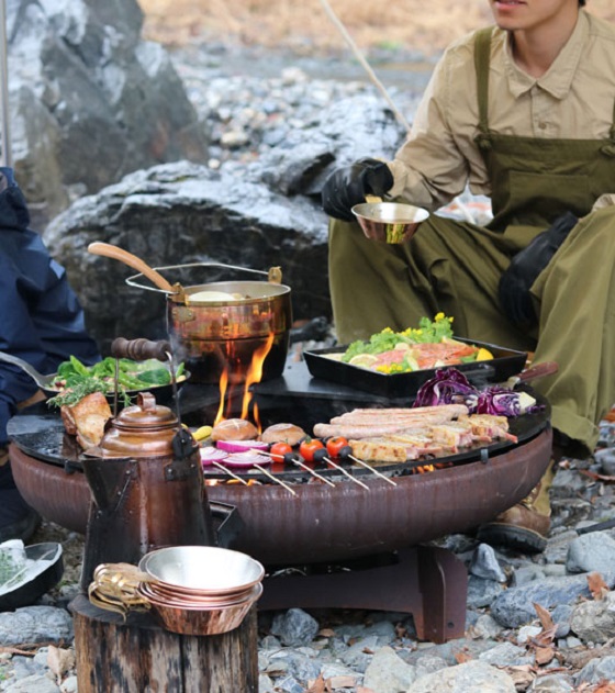ミニマムに楽しむ65cm(2〜3人)、家族や仲間と囲むのにちょうど良い80cm(4〜5人)、圧巻のボウル径1メートル、迫力のグリルサイズでダイナミックに調理を楽しめる100cm(6人〜)。