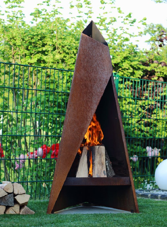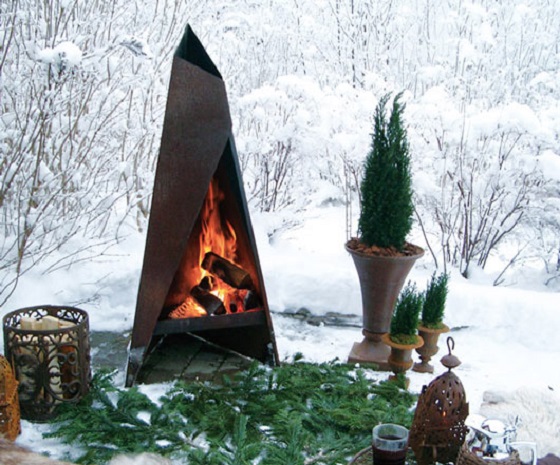 錆びた鉄の味わいを楽しむアウトドアファイヤープレイス。