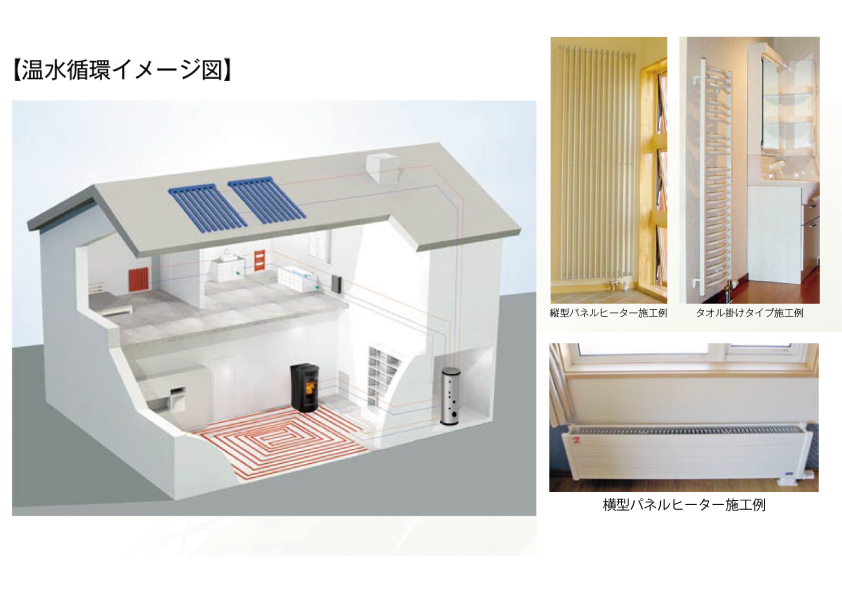 床暖房やパネルヒーターを接続できるコンパクト温水暖房モデル。
