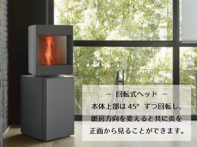 本体上部を回転させることで、暖房方向を変えると共に炎を正面から見ることができ、大きな前面ガラスからゆったりと炎を楽しむことができます。