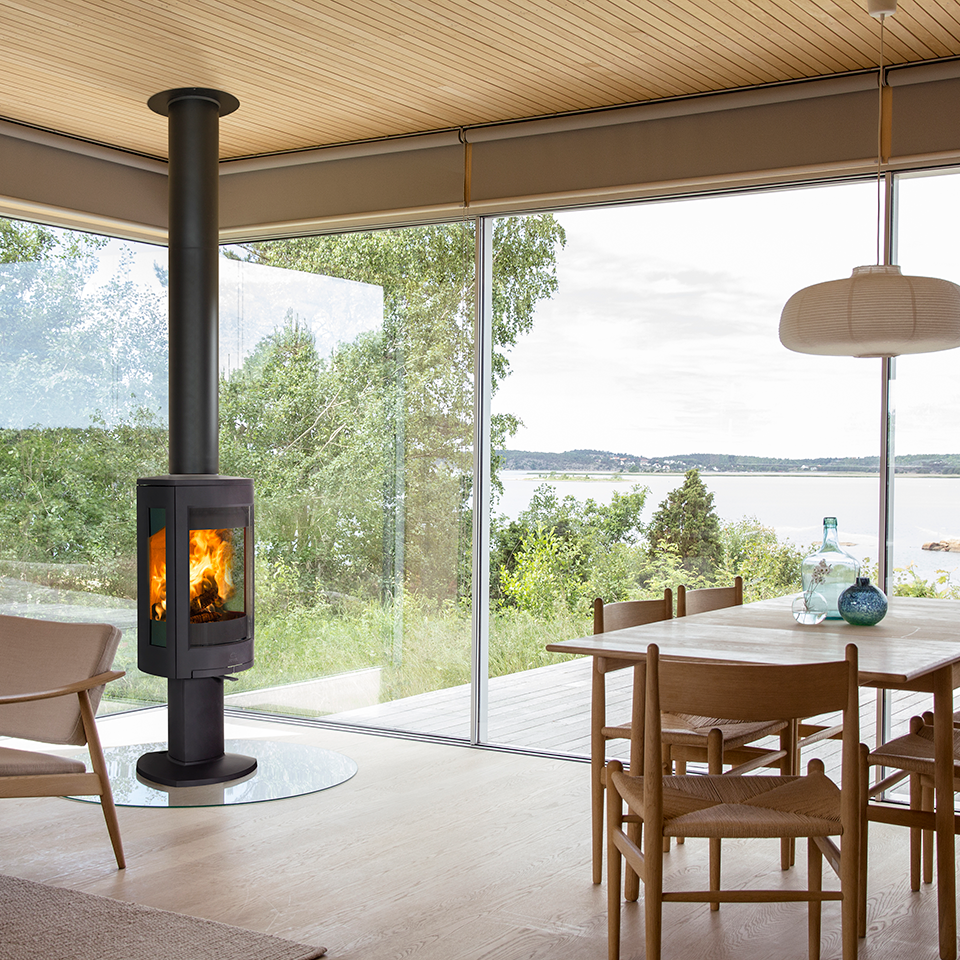 サイドガラスは特別なコーティング(熱線反射)で煤の付着を抑え、さらに燃焼室はホワイトスカモールを使用し、魅力な炎を演出。緩やかな曲線を描くトッププレートや直線的なラインに改良を加え、前進したJøtul F 373 ADVANCE。オプションのターンプレートで360°回転。